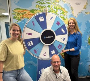De dag begon op kantoor waar collega’s hun lotnummer konden ophalen voor het positiviteitsrad . Met prijzen die varieerden van een extra dag verlof, SkillsTown onesie, worstenbroodjes voor je hele team of zelfs de kans om een werkklus door een collega te laten overnemen.