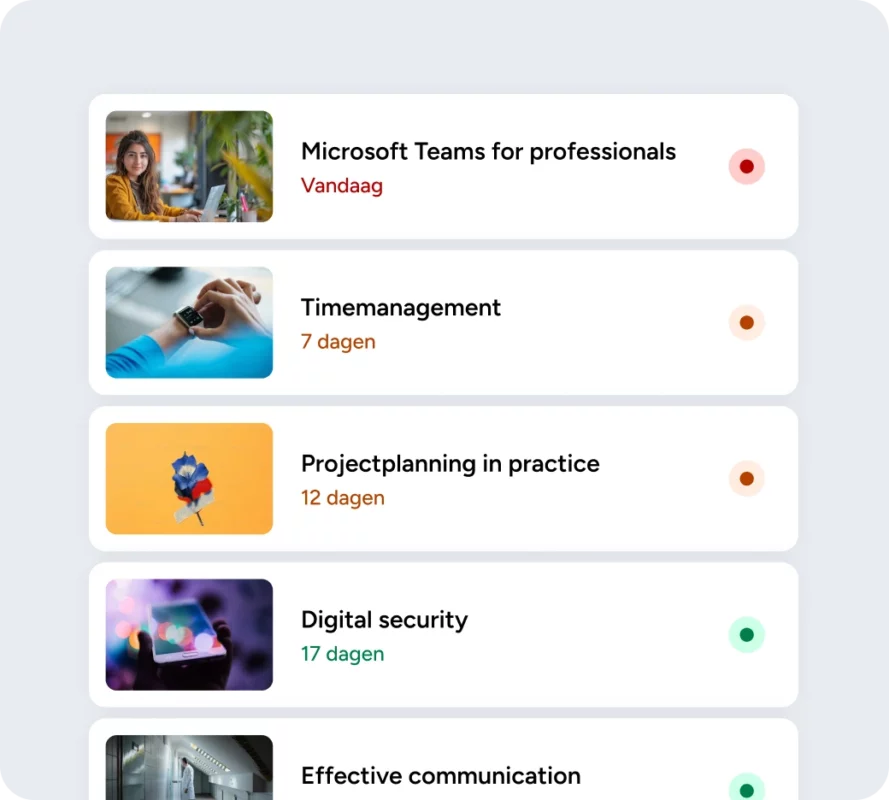 With automatic updates and mandatory learning paths from SkillsTown, employees always stay up to date with the latest laws and regulations. This way, compliance becomes a structural part of the work process and you prevent risks.