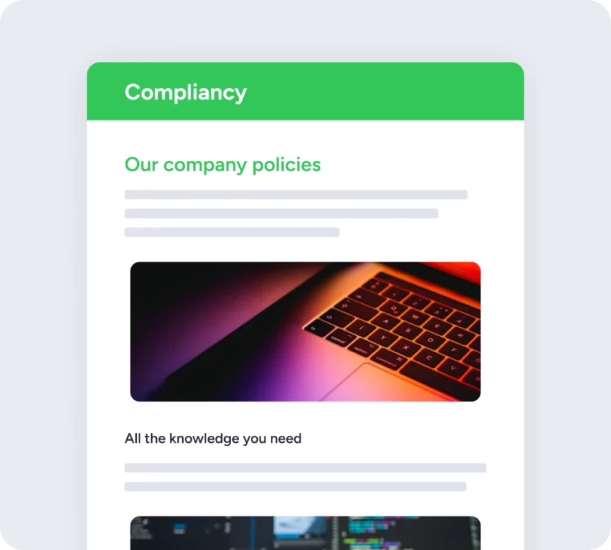 Develop your organization- or department-specific compliance modules that are fully aligned with your internal guidelines. This makes compliance training relevant and hands-on.