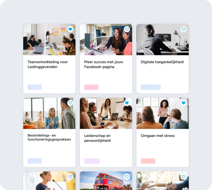 Access a wide range of more than 1,000 online training courses developed by experts. The trainings are divided into seven effective learning formats.