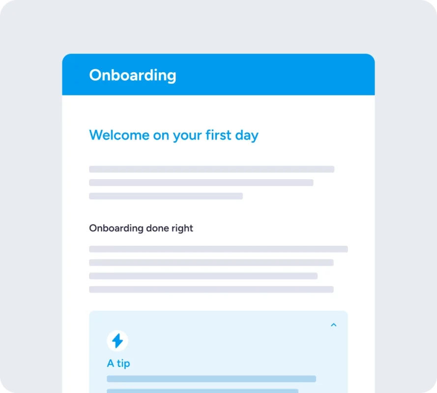 Give new employees a jump start from day one with a structured and interactive onboarding process. Inspire helps you convey information, processes and culture in an engaging way that gets new colleagues inducted and engaged faster.