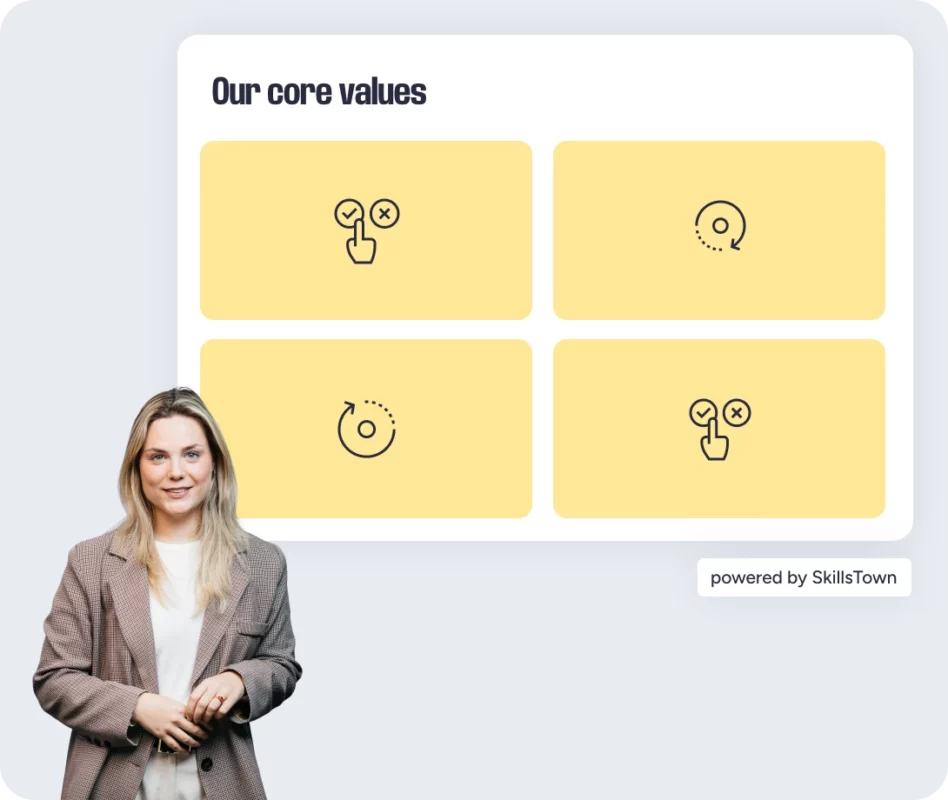 Use professional productions to onboard new employees quickly in a personal and consistent way. Thanks to reusable formats and studio recordings, you can easily repurpose content without starting from scratch each time.